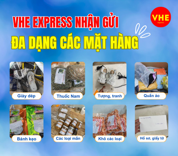 VHE Express nhận vận chuyển nhiều loại hàng hóa khác nhau, kể cả hàng khó gửi như thịt, trứng sữa, hàng fake, hàng chứa Pin. Quý khách có thể thoải mái gửi đi những mặt hàng cồng kềnh, khối lượng lớn, dễ hư hỏng, hàng hóa đòi hỏi giấy tờ phức tạp.
